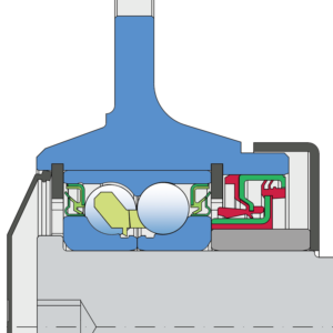 Two part double lip wheel bearing seal on the both side. This sealing provides excellent protection from contamination and low friction.